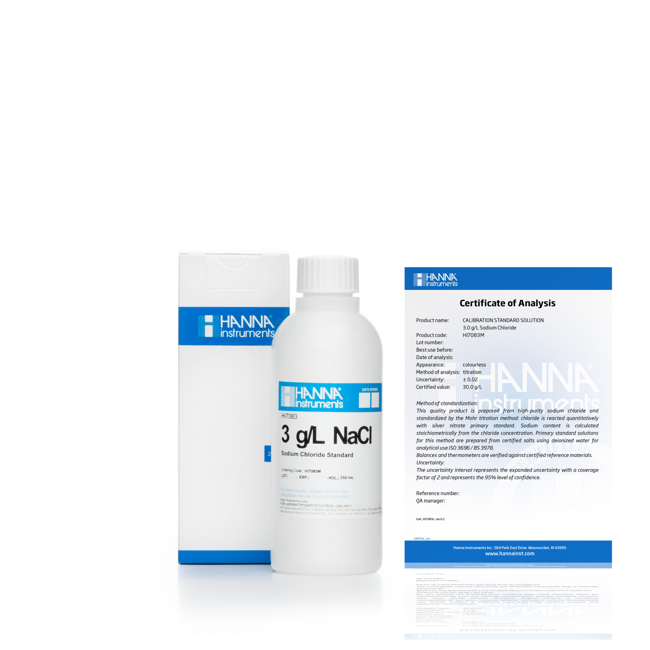 HI7083M là dung dịch chuẩn natri clorua 3.0g/L chất lượng cao được sản xuất theo tiêu chuẩn ISO 3696 / BS3978 sử dụng muối có độ tinh khiết cao, nước khử ion, cân bằng kiểm tra trọng lượng và thủy tinh loại A trong môi trường được kiểm soát nhiệt độ được theo dõi bằng nhiệt kế được chứng nhận. Các giá trị được báo cáo có thể truy nguyên theo Tài liệu tham khảo tiêu chuẩn (SRM) của NIST.