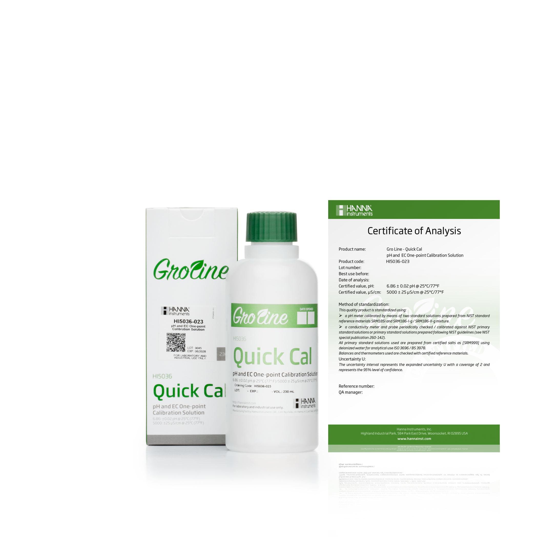Dung dịch đệm chuẩn chất lượng cao được sản xuất theo tiêu chuẩn ISO 3696/BS3978 sử dụng muối có độ tinh khiết cao, nước khử ion, cân bằng kiểm tra trọng lượng được chứng nhận và thủy tinh loại A trong môi trường được kiểm soát nhiệt độ được theo dõi bằng nhiệt kế được chứng nhận. Các giá trị được báo cáo và có thể truy nguyên theo Tài liệu tham khảo tiêu chuẩn (SRMs) của NIST.