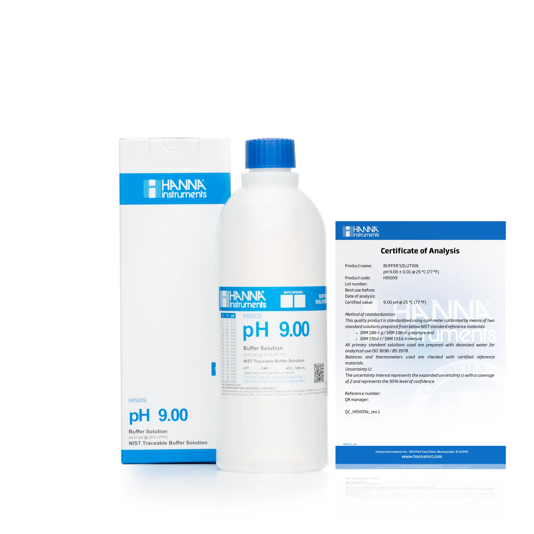 Dung dịch đệm chuẩn pH chất lượng cao được sản xuất theo tiêu chuẩn ISO 3696/BS3978 sử dụng muối có độ tinh khiết cao, nước khử ion, cân bằng kiểm tra trọng lượng được chứng nhận và thủy tinh loại A trong môi trường được kiểm soát nhiệt độ được theo dõi bằng nhiệt kế được chứng nhận. Các giá trị được báo cáo và có thể truy nguyên theo Tài liệu tham khảo tiêu chuẩn (SRMs) của NIST.