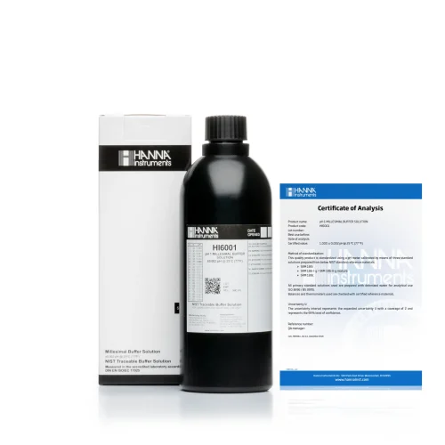 HI6001 là dung dịch hiệu chuẩn Millesimal pH1.000 chất lượng cao. Dung dịch đệm hiệu chuẩn Hanna có số lô và ngày hết hạn được đánh dấu rõ ràng trên nhãn và được đóng kín bằng seal chống giả để đảm bảo chất lượng của dung dịch. Dòng đệm chuẩn của Hanna được thiết kế đặc biệt để có thời hạn dài đối với chai chưa mở.