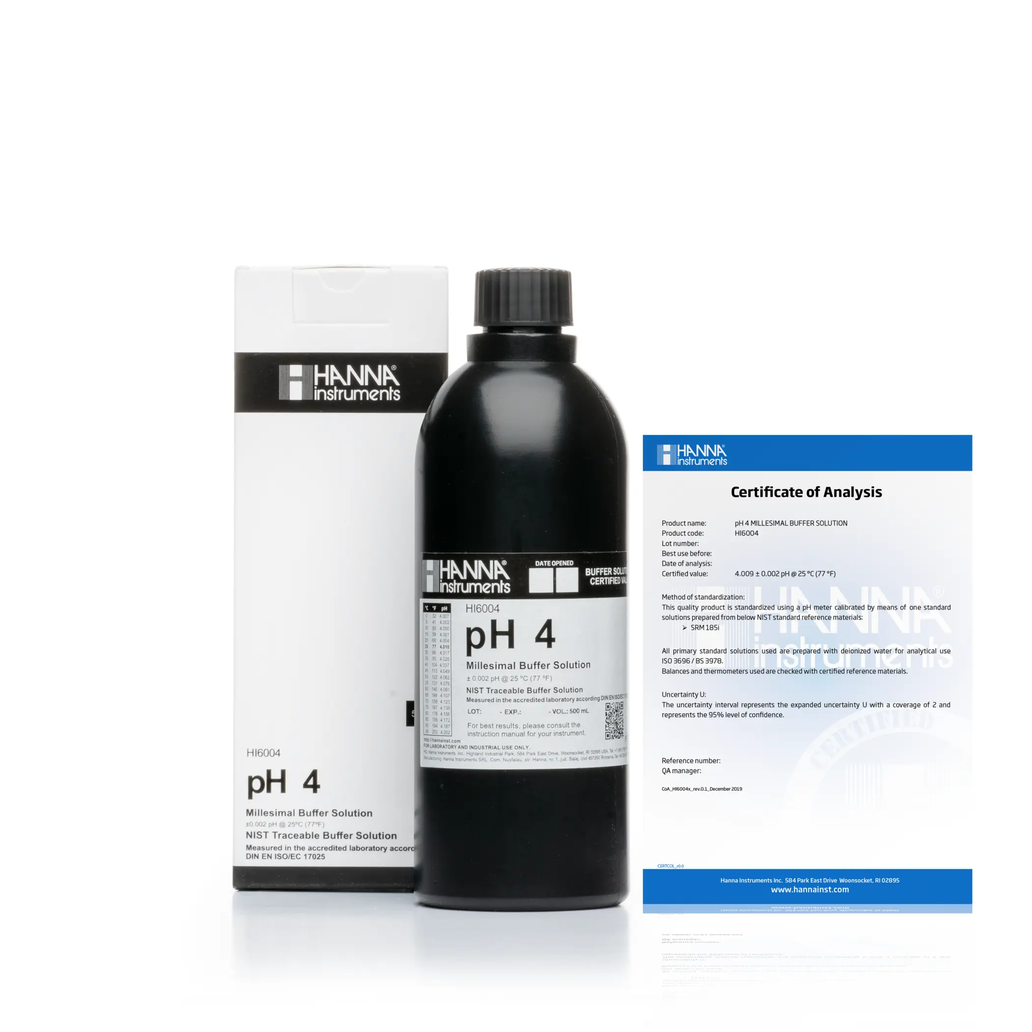 Dung dịch đệm hiệu chuẩn pH cao chất lượng cao được sản xuất theo tiêu chuẩn ISO 3696/BS3978 sử dụng muối có độ tinh khiết cao, nước khử ion, cân bằng kiểm tra trọng lượng được chứng nhận và thủy tinh loại A trong môi trường được kiểm soát nhiệt độ được theo dõi bằng nhiệt kế được chứng nhận. Các giá trị được báo cáo và có thể truy nguyên theo Tài liệu tham khảo tiêu chuẩn (SRMs) của NIST.