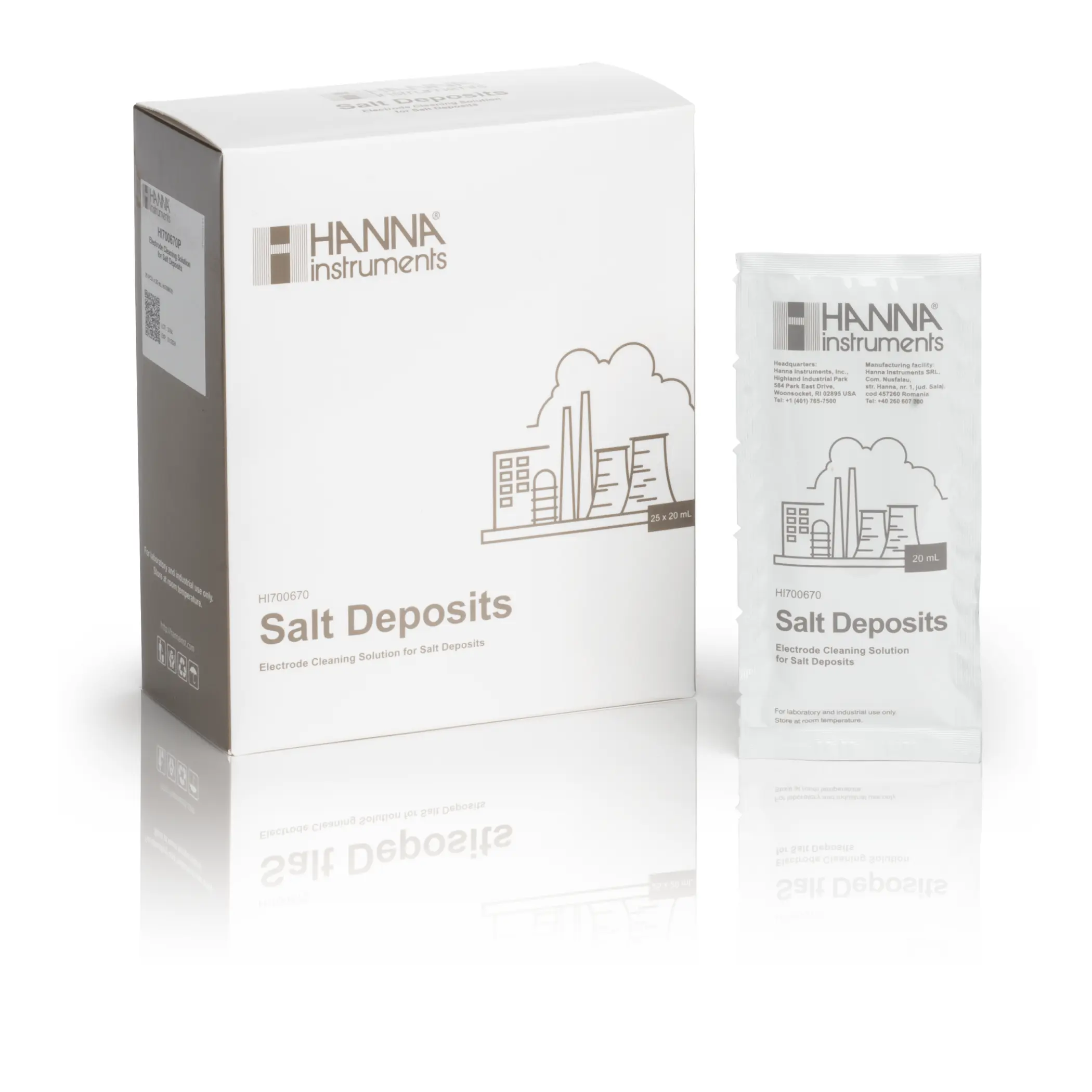HI700670P là Dung dịch làm sạch cặn muối vô cơ trong quy trình công nghiệp. Các điện cực và đầu dò có thể bị bẩn khi sử dụng và cho kết quả không chính xác.