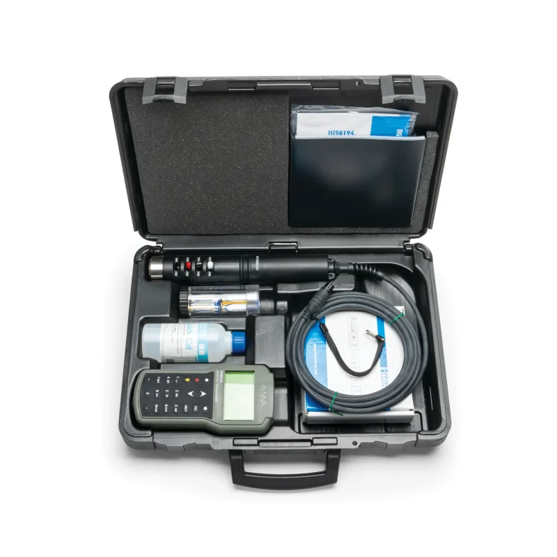 Máy đo đa chỉ tiêu HI98194 là một thiết bị chắc chắn, chống nước, có khả năng giám sát lên đến 12 thông số chất lượng nước quan trọng.